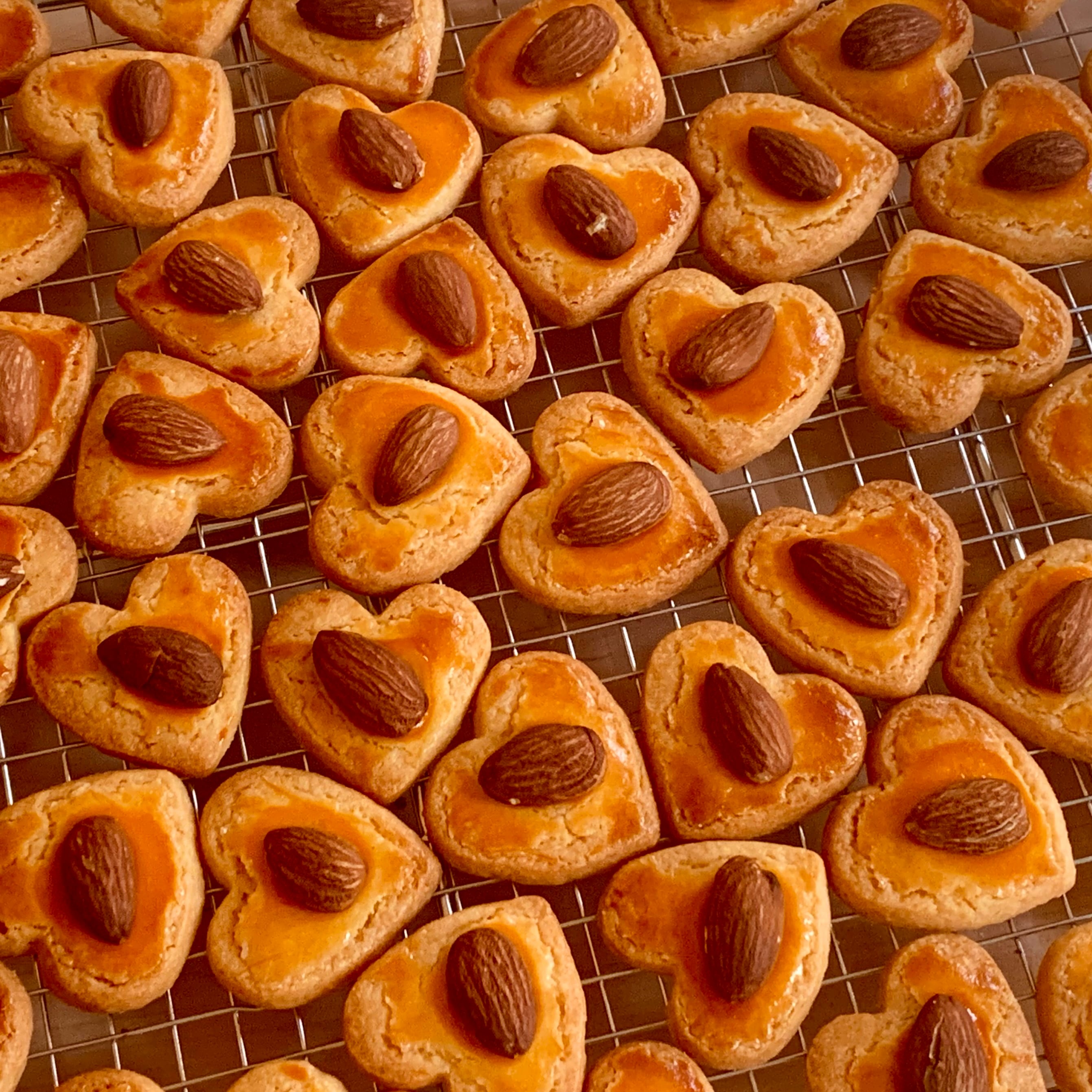 アーモンドパウダーをたっぷり使用したハート型のサブレに、香ばしいアーモンドをトッピング。
